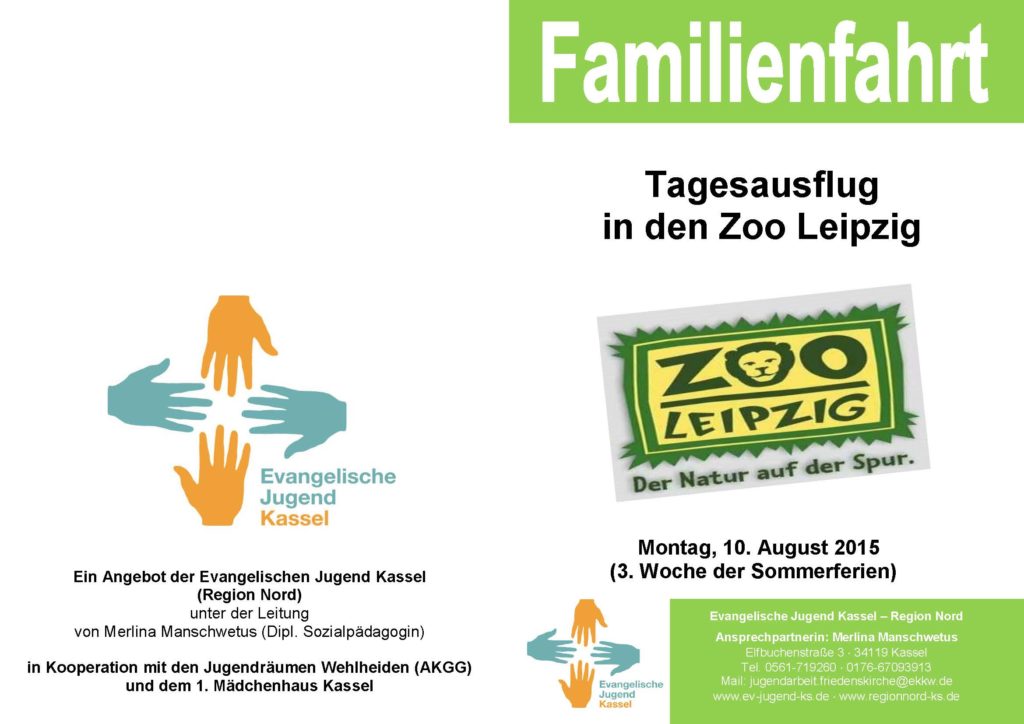 Die Kinder- und Jugendarbeit bietet in der zweiten Ferienwoche Sommerferienspiele und am 10. August einen Tagesausflug in den Zoo Leipzig an. Sommerferienspiele (Anmeldeformular hier) (mehr …)
