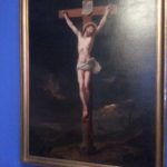 Die Sakristei wird dominiert von einem Kreuzigungsbild Christi (1770 1,10 m breit x 1,45 hoch; siehe Bildergalerie unten). Ursprünglich hing es zusammen mit dem Gemälde der «Verklärung Christi»  (1764 [Angaben variieren von 1761-1767] 395 cm x 230 cm) in der alten, 1738 erbauten, lutherischen Kirche am Graben.  Beide wurden von dem Hofmaler Johann Heinrich Tischbein d. Ä. (1722 bis 1789) gestaltet. Die alte lutherische Kirche am Graben ist die «Mutterkirche» der Lutherkirche (zweite lutherische Kirche) und der Friedenskirche (dritte lutherische Kirche) und wurde im Zweiten Weltkrieg vollständig zerstört. Die Gemälde blieben dank Auslagerung erhalten und wurden auf die beiden verbliebenen lutherischen Gemeinden aufgeteilt. Nachdem die Lutherkirche am Lutherplatz 2013 entwidmet und zur Jugendkulturkirche cross umgestaltet wurde, befindet sich die «Verklärung Christi» in der Kapelle des Hauptfriedhofs. Die Sakristeifenster wurden 1992 gestaltet, nachdem ein Teil der Glasscheiben gesprungen und die Eisenrahmen gerostet waren. Der Kirchenvorstand beschloss eine schlichte Gestaltung in roten, abgestuften Tönungen mit Bleistegen (Gemeindebrief Nr. 213 1992). Der Entwurf stammt vom Nürnberger Glasmaler Jochen Dorn, die Ausführung oblag der Firma Derix Glasgestaltung in Taunusstein.