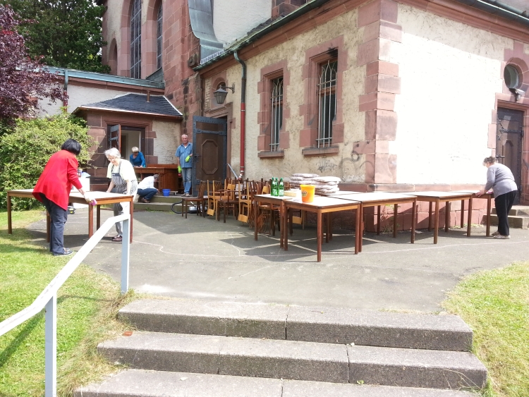 Inzwischen wird die «Altenstube» gerne als Gruppenraum für Gemeindeveranstaltungen benutzt: Freundeskreis Vorderer Westen, Seniorengesprächskreis, Kirchenkaffee, um einige regelmäßige Beispiele zu nennen. Die «Altenstube» wurde im Frühjahr 2014 umfassend saniert. Eigentlich sollten 2013 nur neue Heizkörper für die neue Erdgasheizung angebracht werden, um die veralteten Nachtspeicheröfen zu ersetzen. Hierbei stellte sich aber heraus, dass die «Altenstube» gar nicht an den Heizkreislauf der restlichen Kirche angeschlossen war. Dieser Umstand führte zu einer Bauverzögerung. Daraufhin wurden die Fenster, das Dach, die Sanitäranlage und der Boden ebenfalls erneuert (vgl. Artikel zu den Umbaumaßnahmen). Inzwischen erstrahlt der Raum in neuem Glanz. Die Foto-Galerie zeigt die «Altenstube» vor, während und nach dem Umbau: