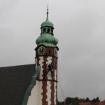 Bei Wind und Wetter wurden am Donnerstag die neuen Kirchturmuhren der Friedenskirche montiert und am Freitag in Bewegung gesetzt. Zum letzten Mal waren hierfür an der Friedenskirche Kletterer der Firma Seilkonzept im Einsatz.