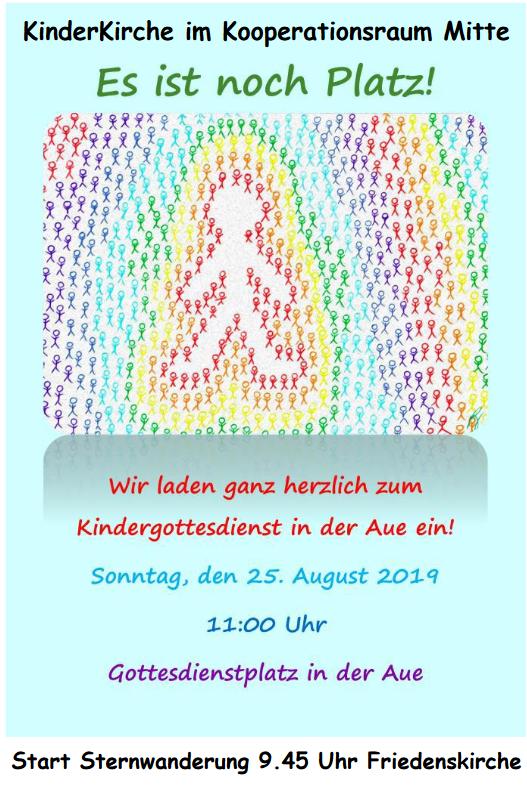 Am Sonntag, dem 25. August, laden Friedenskirche, Kreuzkirche, Südstadt, Wehlheiden und die Jugendarbeit zu einer Sternwanderung in die Aue ein. (mehr …)