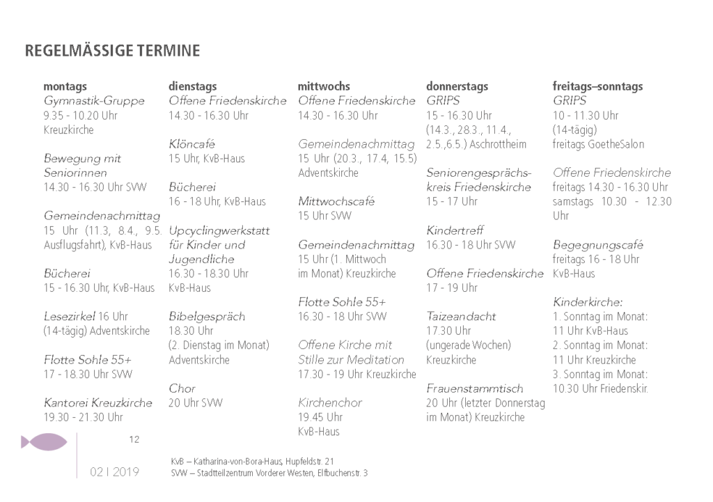 Rund 25 Ehrenamtliche sorgen für die pünktliche und zuverlässige Verteilung unseres Gemeindebriefes „Evangelische Kirche im Kasseler Westen“ in jeden Haushalt unseres Gemeindebezirkes. Die Ehrenamtlichen treffen sich jeweils am Dienstag nach dem Erscheinen des Gemeindebriefes. (mehr …)