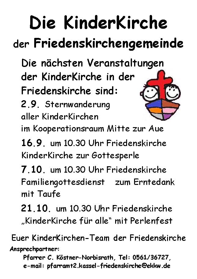 Am 27. Januar feieren wir ab 10.30 Uhr in der Friedenskirche Gottesdienst und Kinderkirche. Wie immer starten wir um 10.30 Uhr in der Friedenskirche und die Kinder ziehen dann in die Blaue Sakristei.Dort soll es um „Johannes, die Wüste und die Taufe Jesu“ gehen. (mehr …)
