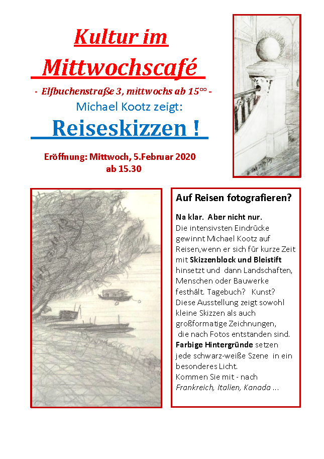 Das Kirchenkaffe findet am 3. Sonntag im Monat nach Gottesdienst und Kinderkirche statt. Beim Kirchenkaffee im Anschluss an den Gottesdienst treffen sich die Erwachsenen und Kinder bei Gesprächen, Getränken und Gebäck wieder. Treffpunkt ist die Altenstube der Friedenskirche (Eingang Elfbuchenstraße). (mehr …)